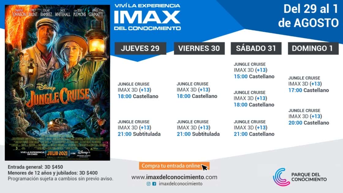 Entrada general $450. Menores de 12 años y jubilados $400. Tickets disponibles en la web imaxdelconocimiento.com o en la App del IMAX.