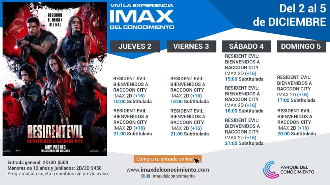 Cartelera del IMAX del Conocimiento del jueves 2 al domingo 5 de diciembre (2D +16).