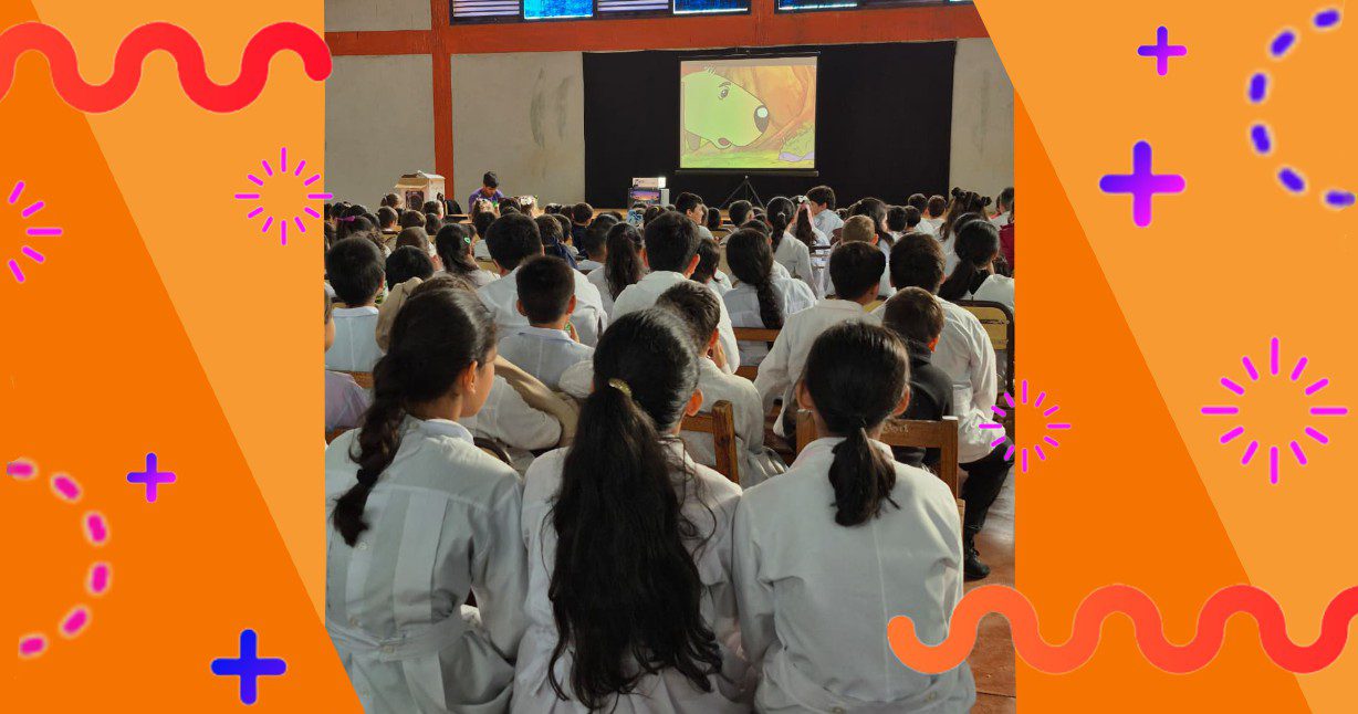 La jornada arrancó con la proyección del cortometraje animado “Reviro y Mate Cocido”, que sirvió como punto de partida para trabajar la lectura de imágenes, la escucha activa y la producción de relatos propios. A partir de esa propuesta, los estudiantes pudieron pensar qué ven, qué escuchan y cómo pueden transformar esas ideas en historias nuevas.