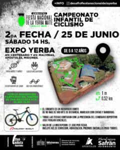 La Dirección de Deportes de la Municipalidad de Apóstoles junto al Club Ciclista invitan a la comunidad en general a la Segunda Fecha del Campeonato Infantil de Ciclismo a desarrollarse el día sábado 25 de junio del corriente desde las 14 horas en el predio de la Expo Yerba.