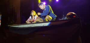 Fue más de una hora de espectáculo, que pasó volando, entre relatos de la vida cotidiana, donde la protagonista recurrente era su hija Bianca; canciones infantiles adaptadas, y trucos de magia, con la colaboración de los niños.
