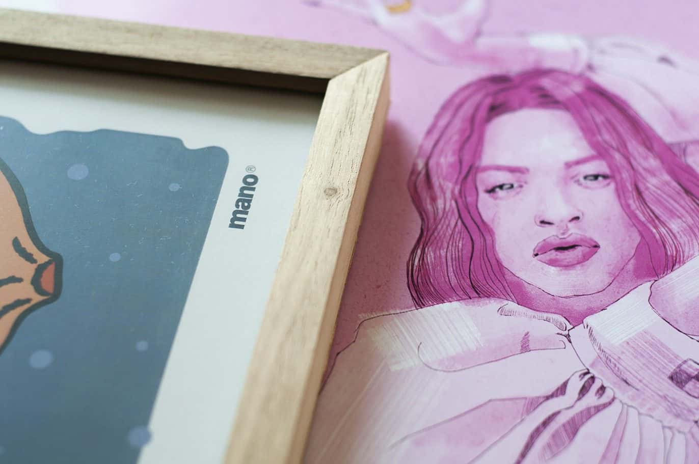 Hoy tienda Mano produce ilustraciones de autor en forma de cuadros listos para colgar. La idea es seguir ilustrando y a corto plazo ir diversificando en más artículos, siempre con la ilustración como protagonista.