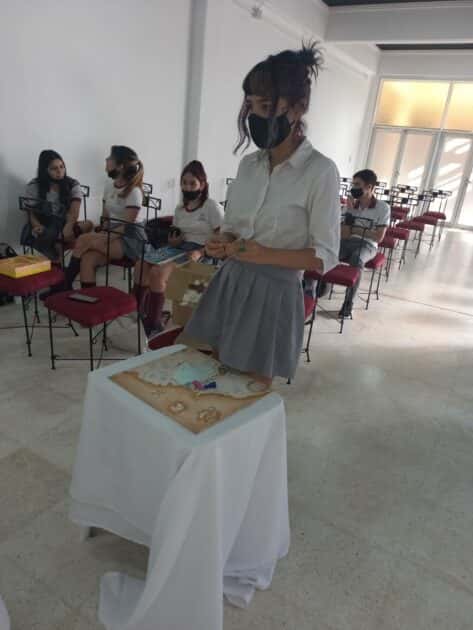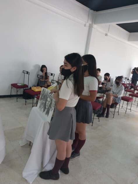 La escritora argentina nos dejó con ganas de seguir charlando ya que se armó una atmósfera realmente interesante por los aportes de la autora de La saga de los nombres y los estudiantes quienes en grupo les presentaron sus producciones basadas en dibujo de retrato, juegos, rompecabezas y más. Nuevamente en el salón y en una instancia de coevaluación de la presentación de producciones y la comunicación establecida con la escritora, los estudiantes destacaron la humanización que representó para ellos ver y escuchar a Clara Levin, autora de la saga que leyeron como alguien que existe realmente, con sus características particulares donde rescataron sus anécdotas de estudiar en Cambridge- Inglaterra, el proceso de escritura de su trilogía, la relación con la editora, y el gran mundo del Fantasy que abordó en sus novelas.