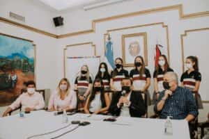 En esta reunión, fue acompañado por el ministro de Gobierno, Marcelo Pérez y la rectora del Instituto Santa María, Sonia Rojas Decut. Estuvieron también la docente a cargo de los proyectos, Karina Pasamán, junto a las alumnas Milagros Mekekuk, Valentina Benítez, Paloma Irrazabal, Sofía Ramírez, Guadalupe Hoffman, y Giana Morero.