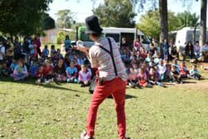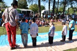Gurises Felices visitó a la comunidad educativa de la Escuela N° 68 del Paraje Portela, en San Javier, donde brindó un show para los chicos, en el patio del establecimiento. Hasta el lugar, también llegaron niños de varias aulas satélite de la zona, que se deleitaron con las ocurrencias de Poca Sopa.
