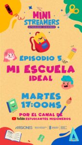 “Mi escuela ideal” será la temática que tratarán, este martes a las 17, los estudiantes que se darán cita en el canal de youtube de la dirección de Políticas Estudiantiles en un nuevo encuentro del ciclo denominado “Mini Streamers”. Se trata de un espacio educativo que busca potenciar la capacidad de producción de contenidos audiovisuales y dar voz a los protagonistas del sistema educativo: los estudiantes.