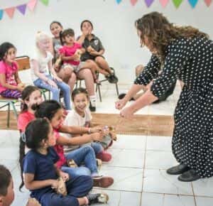 Recorremos ciudades, plazas, barrios y escuelas invitando a la gente a salir a jugar. Les dibujamos rayuelas, les contamos cuentos, les mostramos cómo funciona un yoyo, les dejamos hacer sus propios libros, poemas y dibujos porque la tecnología es hermosa y atrapante, pero debe ir acompañada- equilibrada con saltar, trepar, aire libre, naturaleza, barro, charcos, rondas, juegos en equipo, donde se agarren la mano, establezcan vínculos, pongan sus propias reglas de juego y sin que el adulto esté señalando con el dedo. Jugar es un derecho de los niños y se lo debemos cumplir.