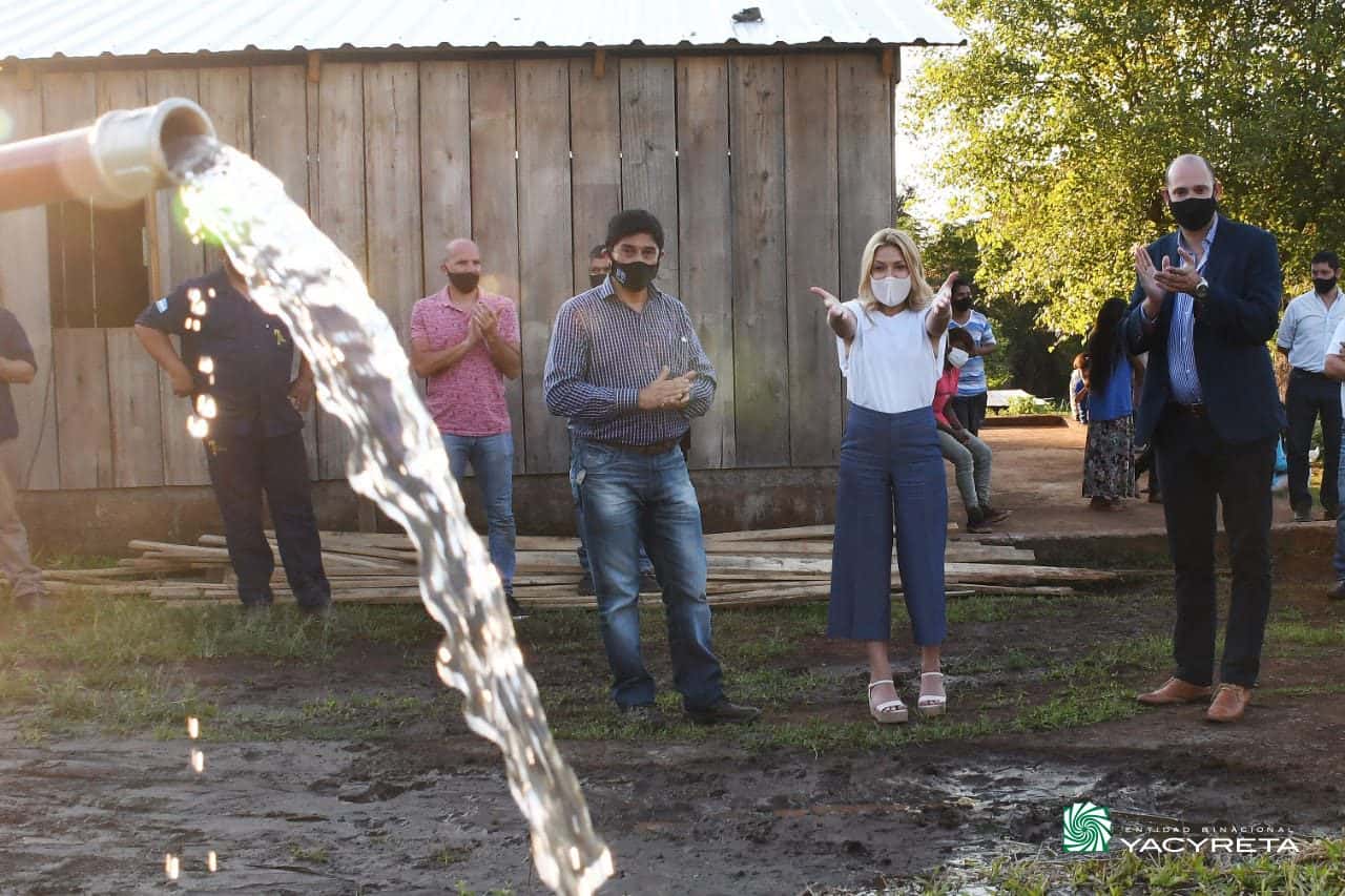 La primera dama de la nación, visitó junto a autoridades de la EBY las obras de red de agua potable que están en ejecución en Misiones. Redes de pozo perforado, tanques elevados y redes de distribución que beneficiarán a cientos de familias.