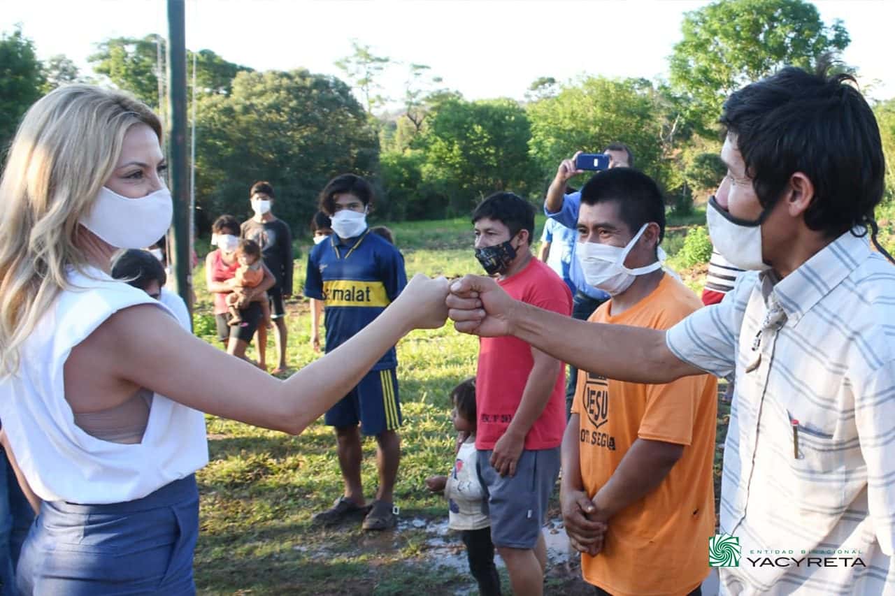 Finalizando la jornada, Fabiola Yáñez recibió la bienvenida de los caciques de la comunidad guaraní “Tekoa Sapucay”, en Hipólito Yrigoyen, donde se prevén obras muy necesarias para sus familias.