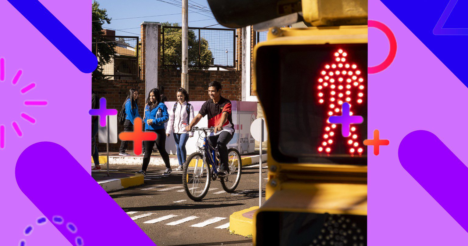 Los capacitadores de la Escuela de Educación Vial brindan a niños, niñas y adolescentes instancias de aprendizaje teórico-prácticas. Se abordan temas como los derechos y obligaciones de peatones y conductores en la vía pública, con una posterior aplicación en la pista vial instalada en la Escuela, donde los participantes asumen los roles de peatones, ciclistas y automovilistas.