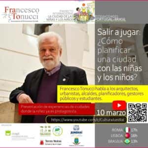 Francesco Tonucci se dirige a los arquitectos, urbanistas, planificadores, políticos y funcionarios municipales para hablar del derecho al JUEGO LIBRE de los niños y niñas en el espacio público y de CÓMO planificar una ciudad contando con su participación .