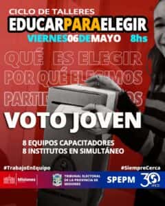 REALIZARÁN UN CICLO DE TALLERES DEL VOTO JOVEN, “EDUCAR PARA ELEGIR”