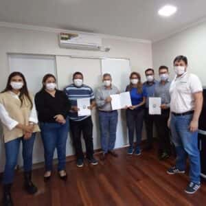 (Participaron de la firma del convenio el Coordinador de Agencia Universitaria, Carlos Vigo; el Coordinador de Movilidad Planificada, Maximiliano Da Rosa y el Presidente del Consejo General de Educación, Alberto Galarza. Acompañaron la firma el Director General de Deportes Renzo Romero; la Coordinadora del Proyecto ECO BICI, Yolanda Andino y el Coordinador de Innovación y Educación Disruptiva, Aníbal Arroyos.)