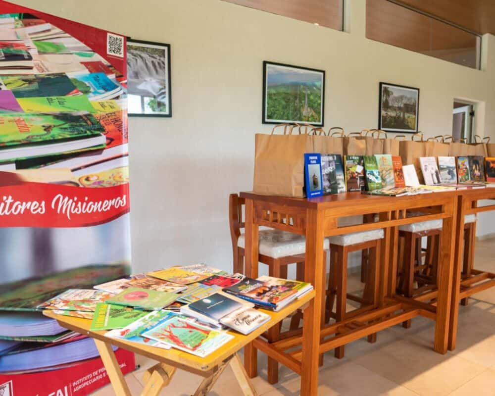 Autoridades del Instituto de Fomento Agropecuario e Industrial (IFAI), junto a la Sociedad Argentina de Escritores (SADE) filial Misiones y del Ministerio de Turismo, entregaron kits de libros de autores misioneros a 13 alojamientos turísticos de la ciudad de Oberá.