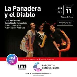 La tercera instancia del ciclo cogestionado entre el Parque del Conocimiento y el Instituto Provincial del Teatro Independiente, se realizará este sábado con las obras “La Panadera y el Diablo” (Teatro de Prosa 17 Hs.) y “Sobre la importancia de fotografiar la comida” (Teatro Lírico 20 Hs.). Entrada libre y gratuita. Los mayores de 13 años deberán presentar Pasaporte Sanitario.