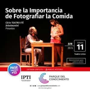 La tercera instancia del ciclo cogestionado entre el Parque del Conocimiento y el Instituto Provincial del Teatro Independiente, se realizará este sábado con las obras “La Panadera y el Diablo” (Teatro de Prosa 17 Hs.) y “Sobre la importancia de fotografiar la comida” (Teatro Lírico 20 Hs.). Entrada libre y gratuita. Los mayores de 13 años deberán presentar Pasaporte Sanitario.