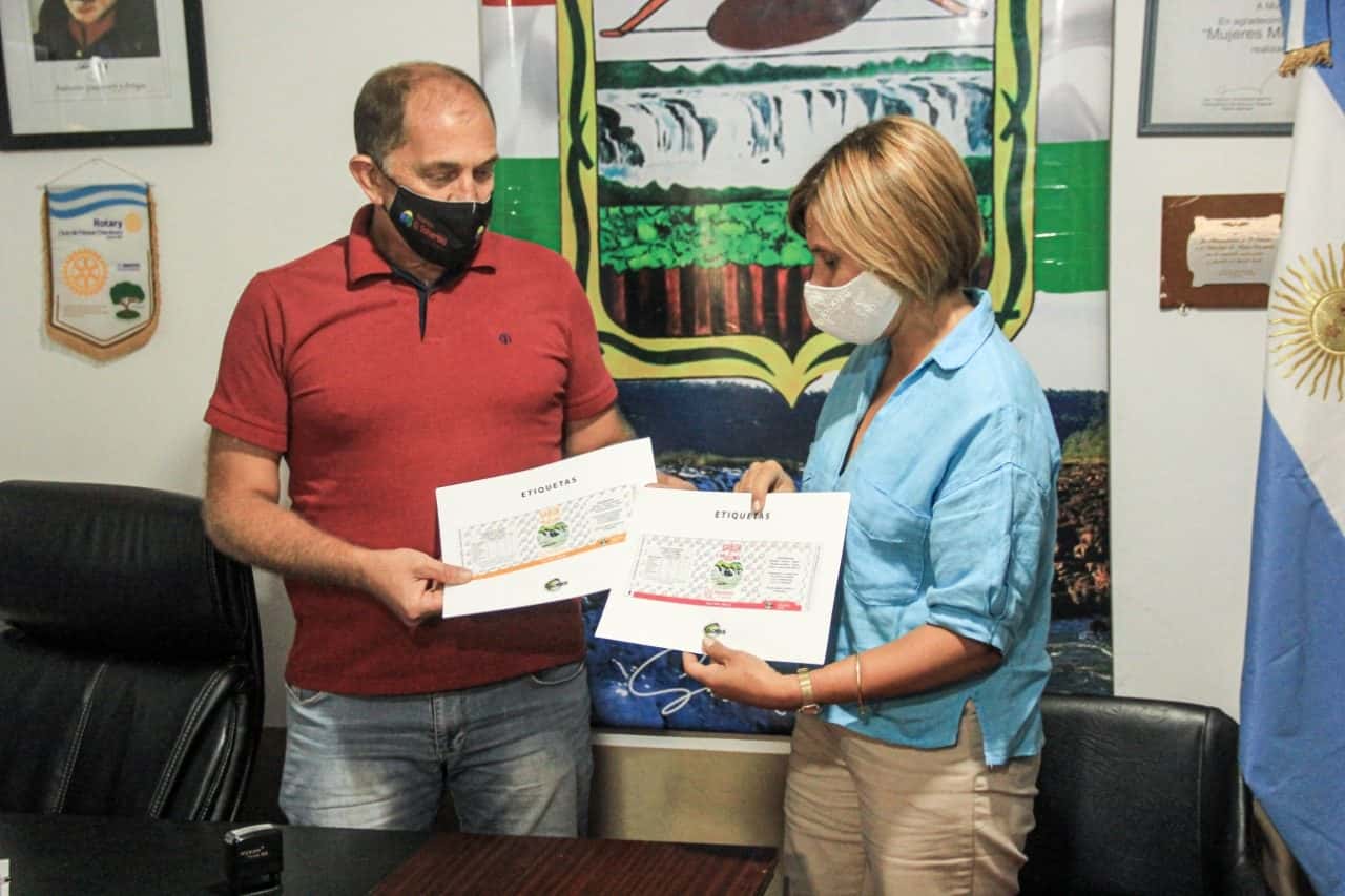 Además de la entrega de las etiquetas, papeles de habilitación y elementos gráficos de marca a los representantes de la cooperativa escolar de la EFA; la presidente de ADEMI, lic. Suzel Vaider entregó una copia de la documentación al intendente de El Soberbio, Roque Soboczinsky como parte del programa de Desarrollo Local de la Agencia.